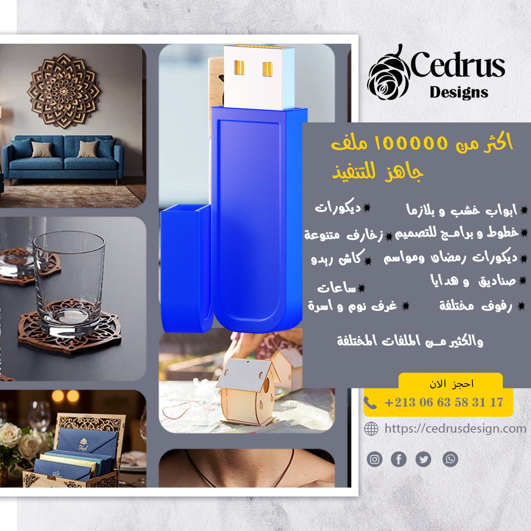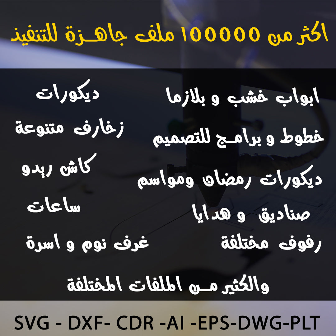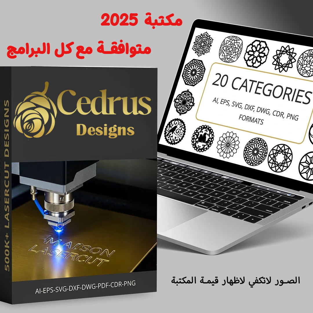 جمعنا فيها مئات النماذج الاحترافية الدقيقة — من زخارف الأبواب، وديكورات الجدران، إلى لوحات الإشهار والقطع المخصصة للنجارين ومنفذي الديكور.